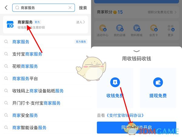 2、進(jìn)入商家服務(wù)頁面后,閱讀并同意相關(guān)協(xié)議,點擊開啟即可完成商家服務(wù)的開通。