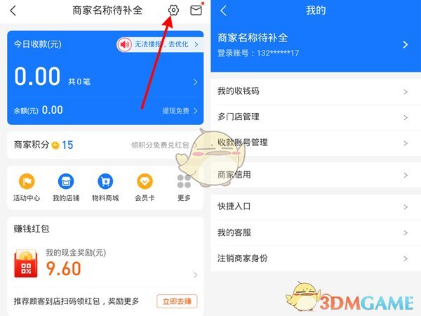 3、在商家服務(wù)頁面右上角點擊設(shè)置圖標(biāo),選擇“我的收錢碼”,然后就可以升級為商家收款碼了。
