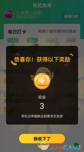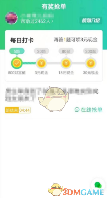 3、在“有獎?chuàng)寙巍表撁嬷悬c擊“在線搶單”,這時會彈出答題窗口。