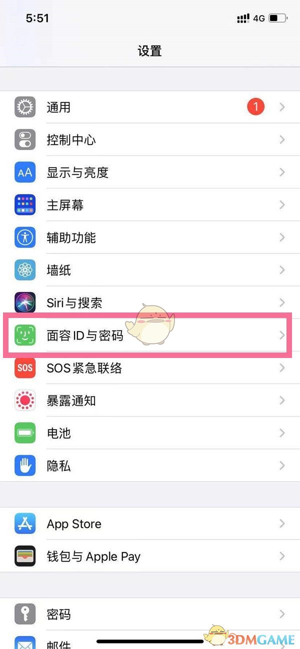 1、打開手機的設(shè)置菜單,選擇【面容ID與密碼】選項。