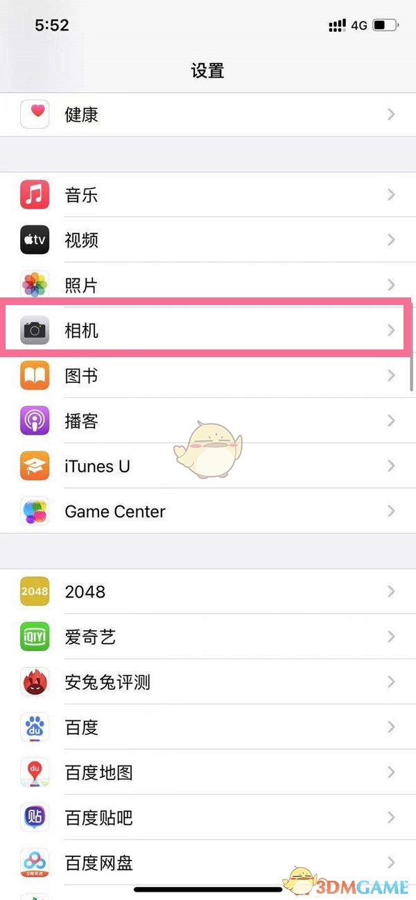 1、首先打開手機(jī)的設(shè)置,找到并點(diǎn)擊【相機(jī)】選項(xiàng)。