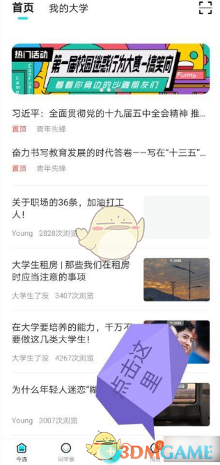 1、首先打開“今日校園”APP,點擊首頁的“我的大學”選項。