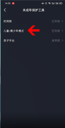 3、點(diǎn)擊進(jìn)入“兒童/青少年模式”,