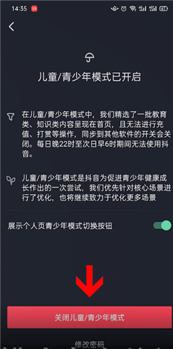 4、點(diǎn)擊“關(guān)閉兒童/青少年模式”按鈕,
