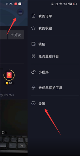 1、首先,打開抖音極速版,進(jìn)入“我”頁面,點(diǎn)擊右上角的三條橫線,在彈出的菜單中選擇“設(shè)置”。