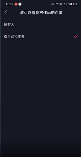 4、在這里,你可以選擇“僅自己和作者”,設(shè)置后,其他用戶將無法在你的個(gè)人主頁看到你的點(diǎn)贊記錄,也無法在推薦中看到你喜歡的作品。