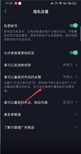 3、點(diǎn)擊“誰可以看我對作品的點(diǎn)贊”設(shè)置。