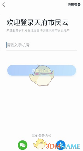 1、首先,打開天府市民云APP,選擇合適的登錄方式,并登錄到個人賬號。