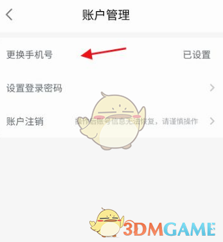 5、在賬戶管理界面,找到“更換手機號”選項,點擊進(jìn)入手機號更換頁面。