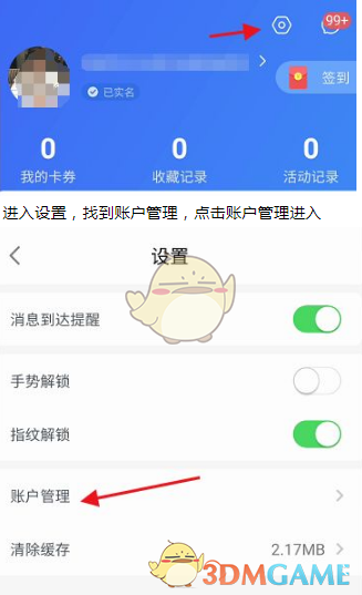 4、在設(shè)置頁面,選擇“賬戶管理”選項,點擊進(jìn)入賬戶管理界面。