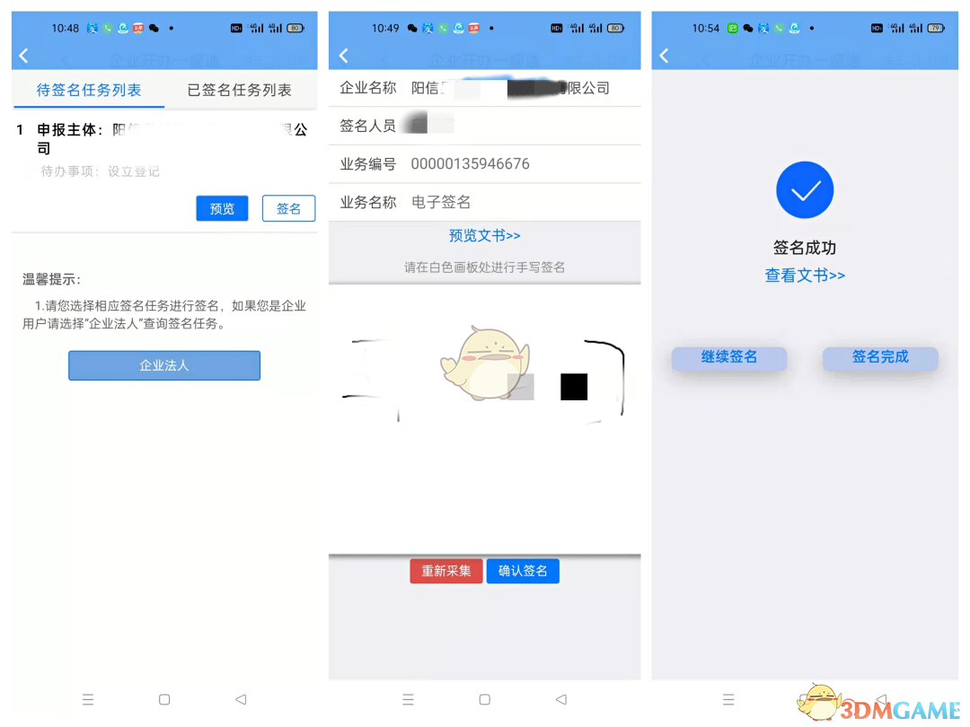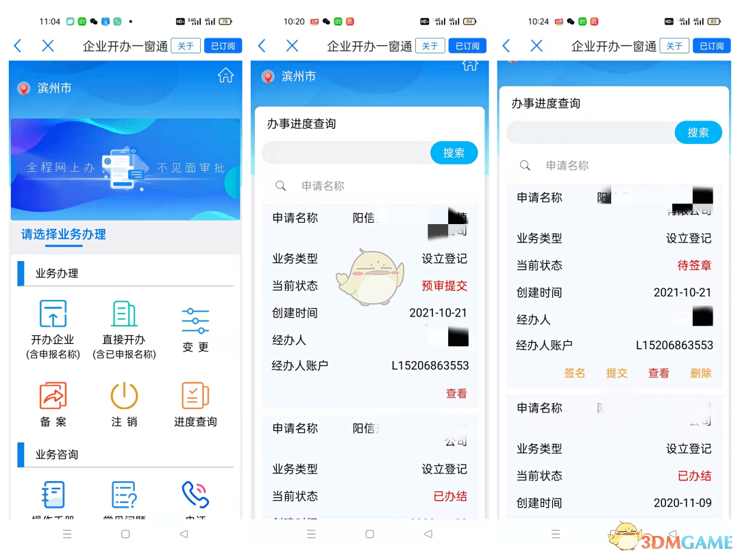4、提交完成后,可以通過“辦事進(jìn)度查詢”查看登記狀態(tài)。當(dāng)顯示“待簽章”時,點(diǎn)擊“簽名”按鈕(所有涉及簽名的人員需下載“愛山東”APP,并完成L2級別及以上的認(rèn)證)。待所有人員完成簽名后,點(diǎn)擊“提交”即可。