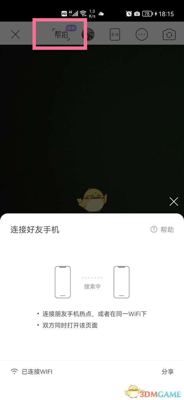 2、接著,點(diǎn)擊界面頂部的【幫拍】選項(xiàng),便可進(jìn)入幫拍模式。