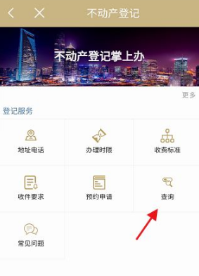 4、進入不動產(chǎn)登記頁面后,點擊“登記服務(wù)”中的“查詢”選項。