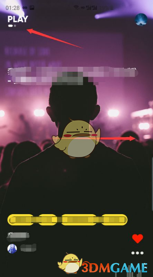 1、首先打開moo音樂,進入后會看到你之前播放的主頁。如果沒有特別設(shè)置,默認會顯示在PLAY界面,你可以通過從右向左滑動來切換頁面。