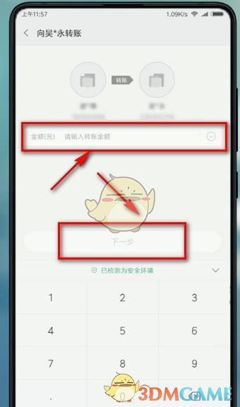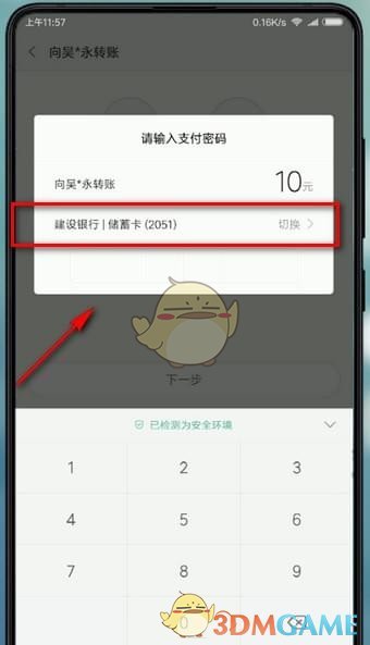 4、選擇支付方式后,輸入支付密碼即可完成轉(zhuǎn)賬操作。