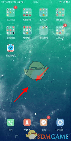 5、此時可以返回手機桌面,長按桌面空白處或通過捏合手勢進入桌面設置;