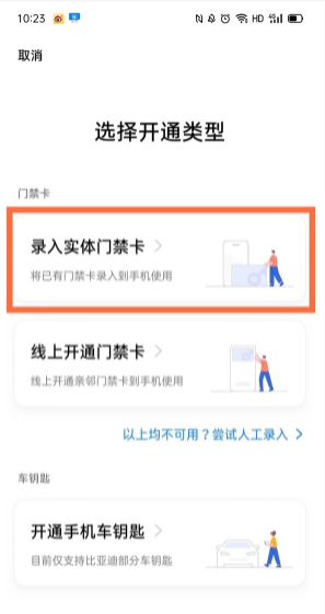 3、點擊【錄入實體門禁卡】。