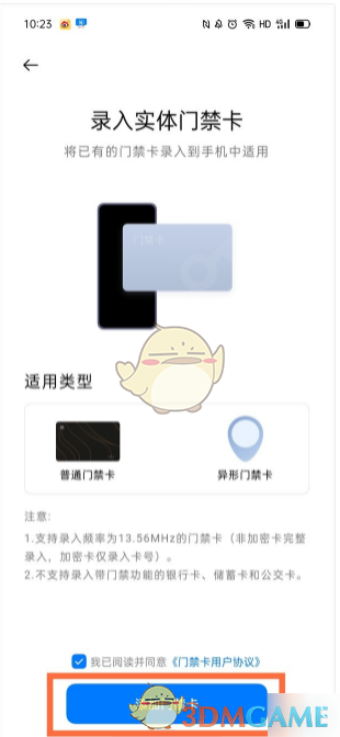 5、將實體門禁卡貼近手機背面,根據(jù)提示完成錄入即可。
