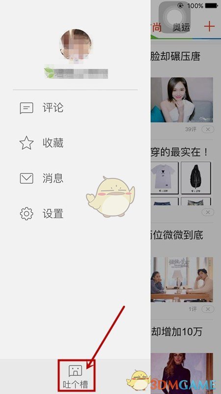 2、點(diǎn)擊左上角的頭像,可以進(jìn)入設(shè)置界面。如果你想要發(fā)表評(píng)論,可以選擇“吐個(gè)槽”功能,但這僅限于發(fā)布帖子,并不是發(fā)布文章。