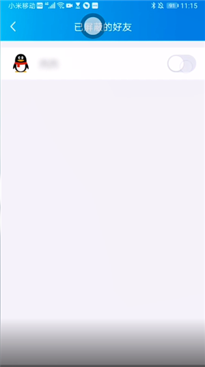 2、接著,點(diǎn)擊“已屏蔽的好友”選項(xiàng),然后將屏蔽開(kāi)關(guān)關(guān)閉,就能成功移除該好友。