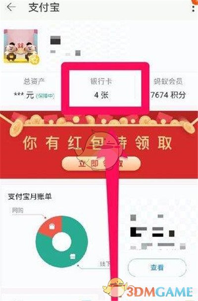 3、在支付寶界面中,找到“銀行卡”選項并點擊,之后可以查看已綁定的銀行卡信息。