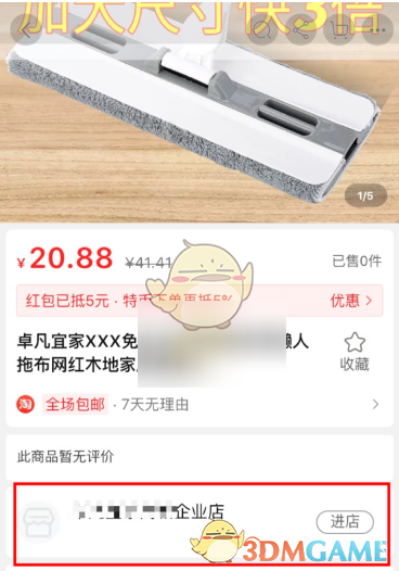 2、在商品的詳情頁(yè)面,向上滑動(dòng)頁(yè)面,你就能看到該店鋪的信息。接下來(lái)點(diǎn)擊“進(jìn)店”按鈕。