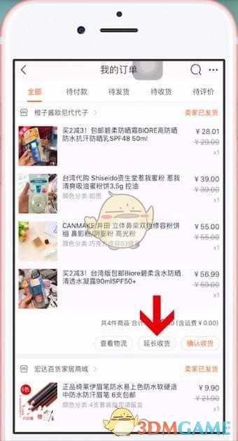 2、選擇需要延長(zhǎng)收貨時(shí)間的訂單,點(diǎn)擊頁(yè)面下方的【延長(zhǎng)收貨】按鈕,就能將收貨時(shí)間延長(zhǎng)三天。