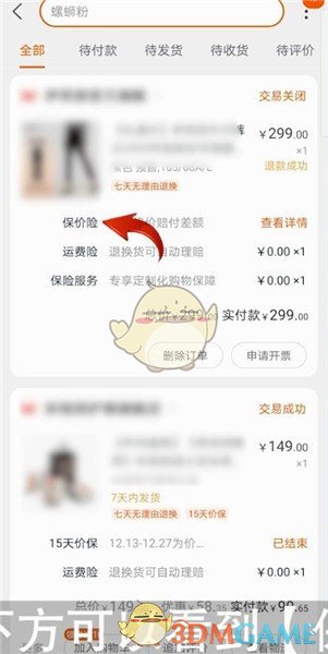 2、找到你想查看保價(jià)服務(wù)的訂單。如果在商品下方出現(xiàn)了【保價(jià)險(xiǎn)】字樣,那么說(shuō)明該商品是支持保價(jià)服務(wù)的。