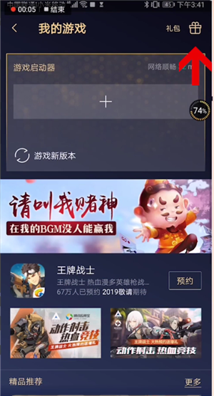 1、首先在騰訊手機管家的首頁找到“實用工具”選項,點擊后選擇“游戲盒子”功能,進入頁面后,可以看到右上角有禮包標志。