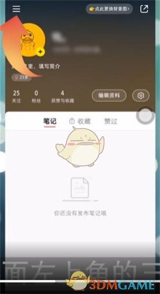 2、在個人頁面,點擊左上角的三條橫線圖標。