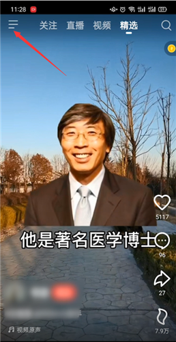 1. 首先,打開抖音火山版應用,點擊屏幕左上角的三條橫線圖標。