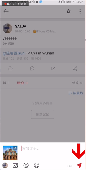 1、首先,打開微博國際版app,在你想評論的微博下方點擊添加評論按鈕,