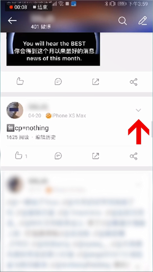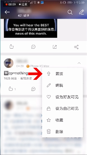 2、接著,點擊微博右上角的三角形標(biāo)志,隨后在彈出的菜單中選擇“置頂”選項,成功后該微博就會置頂了。