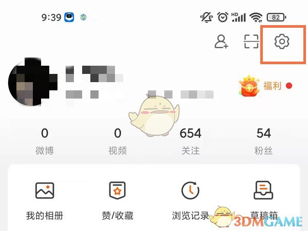 1、首先,打開微博app,進(jìn)入“我”頁面并點(diǎn)擊右上角的設(shè)置按鈕。
