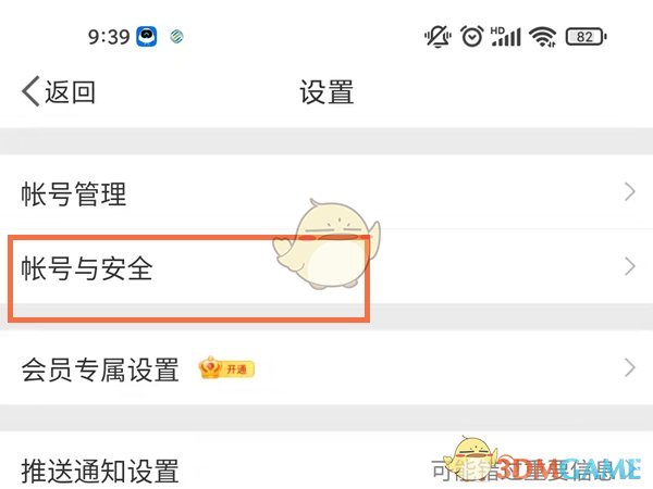 2、在設(shè)置菜單中,選擇“賬號(hào)與安全”選項(xiàng)。