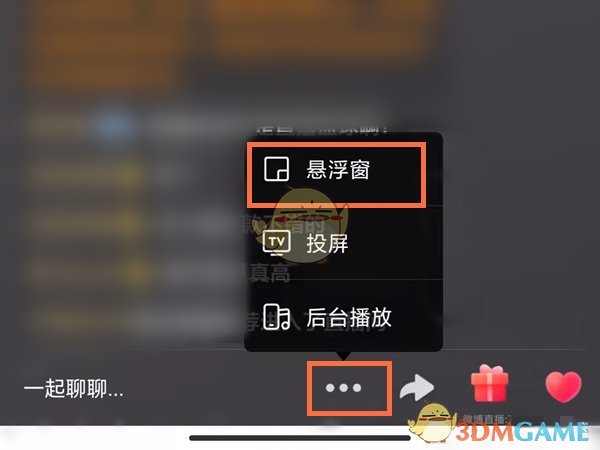 2、進(jìn)入直播頁面后,點(diǎn)擊屏幕底部的三個(gè)點(diǎn),選擇懸浮窗模式即可開始小窗口播放。