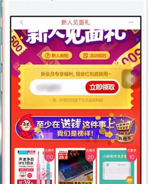 2、點(diǎn)擊【立即領(lǐng)取】按鈕即可領(lǐng)取,注意,新人禮包僅限首次使用淘寶的手機(jī)用戶領(lǐng)取。