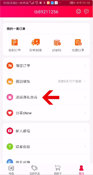 1、首先,打開一淘應(yīng)用,進(jìn)入首頁并點(diǎn)擊“我的”選項(xiàng),你將看到“邀請(qǐng)賺禮金券”的選項(xiàng)。