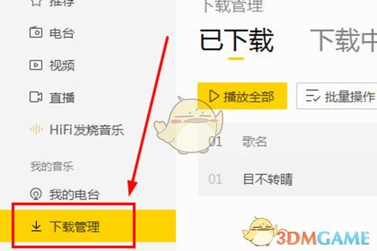 3、完成下載后,點擊【我的音樂】欄下的【下載管理】即可查看下載歌曲的詳細信息。