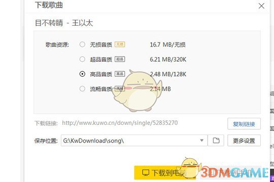 2、下載窗口會彈出,你可以根據(jù)個人需求選擇歌曲的音質(zhì),并設(shè)置下載路徑。最后,點擊【下載到電腦】按鈕進行下載。