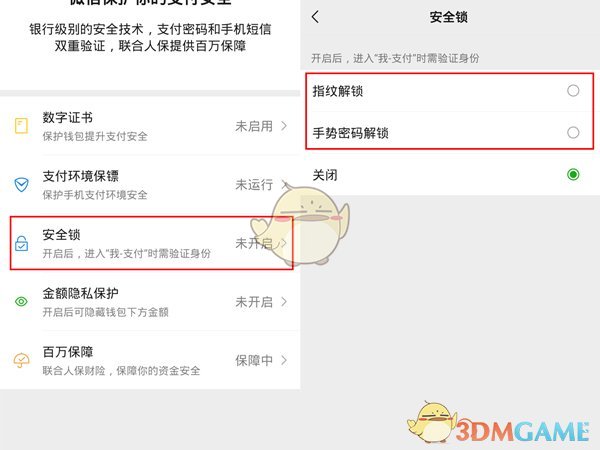 3、然后選擇“安全鎖”功能,接下來可以選擇“指紋解鎖”或“手勢(shì)密碼解鎖”來完成設(shè)置。