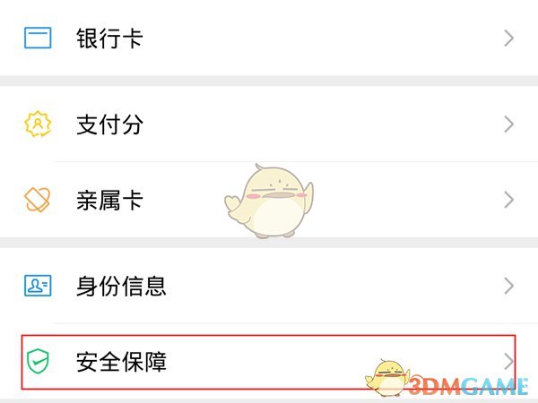 2、接著點(diǎn)擊“安全保障”選項(xiàng)。
