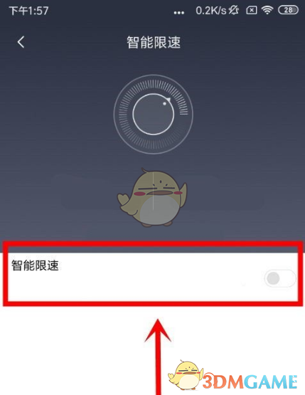 4、進(jìn)入智能限速頁(yè)面后,點(diǎn)擊右側(cè)的開關(guān)按鈕,開啟此功能。