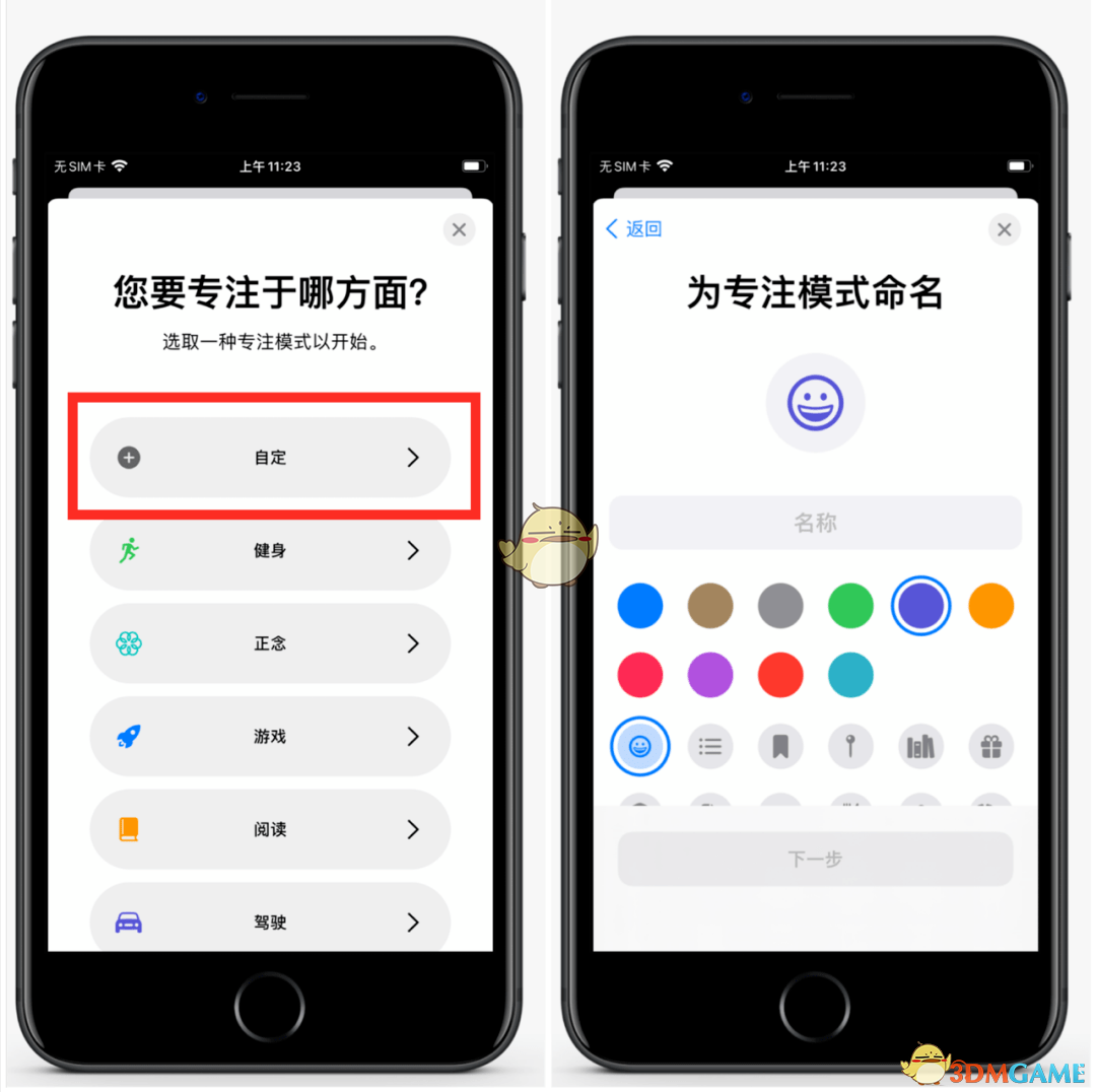 3、在出現(xiàn)的選項中,選擇【自定】來創(chuàng)建一個新的專注模式;