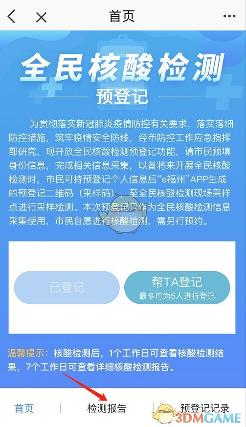3、進(jìn)入后,點(diǎn)擊“檢測(cè)報(bào)告”按鈕。