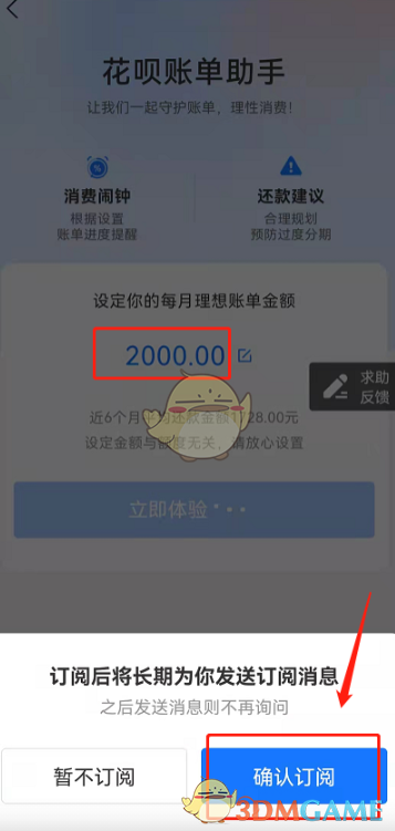 2、接著頁面會跳轉(zhuǎn)到下圖所示的界面,用戶可以根據(jù)個人需求設(shè)置一個理想金額,之后點擊“立即體驗”,并同意下面的確認訂閱。
