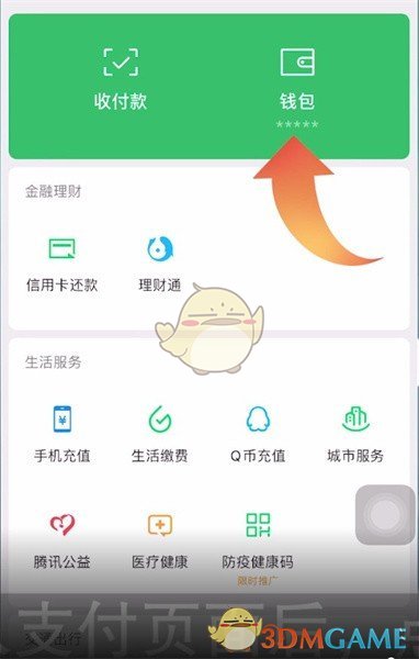 2、在支付頁面中,點擊“錢包”,然后再選擇“零錢通”;