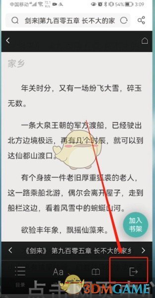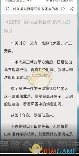 2、點(diǎn)擊進(jìn)入小說后,瀏覽器會(huì)自動(dòng)進(jìn)入閱讀模式。