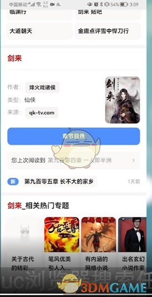 1、首先打開UC瀏覽器,搜索你想要閱讀的小說。