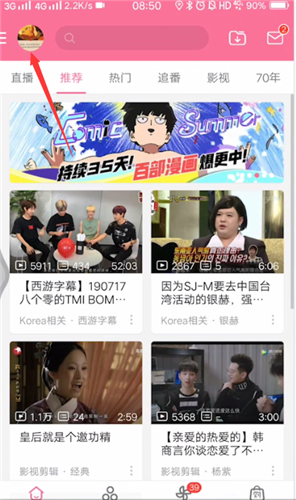 1、首先打開(kāi)手機(jī)上的嗶哩嗶哩APP,然后點(diǎn)擊左上角的個(gè)人頭像。
